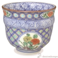 染付と色絵が鮮やかに調和した湯呑です。窓絵の中に表現される可愛い草花が心和ませてくれます。