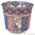 染付の青と赤絵の調和が美しい湯呑です。七宝のつなぎの文様は贈答品に最適です。