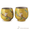 【清水焼(京焼)】組湯呑 黄交趾ふくろう ペア