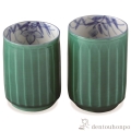 【清水焼(京焼)】組湯呑 青交趾ソギ ペア