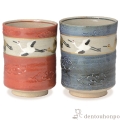 【清水焼(京焼)】組湯呑 染赤雲鶴 ペア