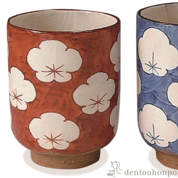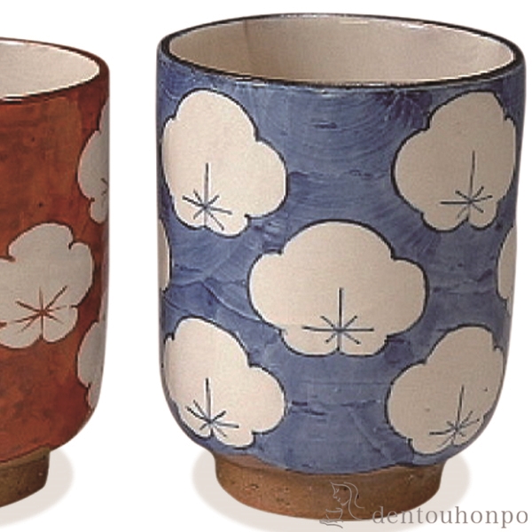 食卓にぱっと花咲く梅の花。青赤ペアで愛らしく、普段使いにも適しています。