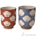 【清水焼(京焼)】組湯呑 青・赤小梅 ペア