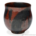 柿釉の赤と、鉄彩の黒がお互いを引き立て合っています。存在感がありながら重量は軽く、口当りの良い湯呑です。