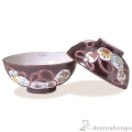 紫交趾の中に白い瓢箪が美しく映えます。高貴な色使いで、格調高い贈り物にふさわしい飯碗です。