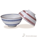 【清水焼(京焼)】組飯碗 染赤帯古紋 ペア