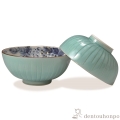 爽やかな浅葱色が涼しげな昇峰窯の飯碗です。内側に染付で紫陽花を描きました。