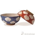 【清水焼(京焼)】組飯碗 青・赤小梅 ペア