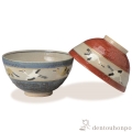 【清水焼(京焼)】組飯碗 染赤雲鶴 ペア