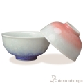 【清水焼(京焼)】組飯碗 花結晶 白地青赤 ペア