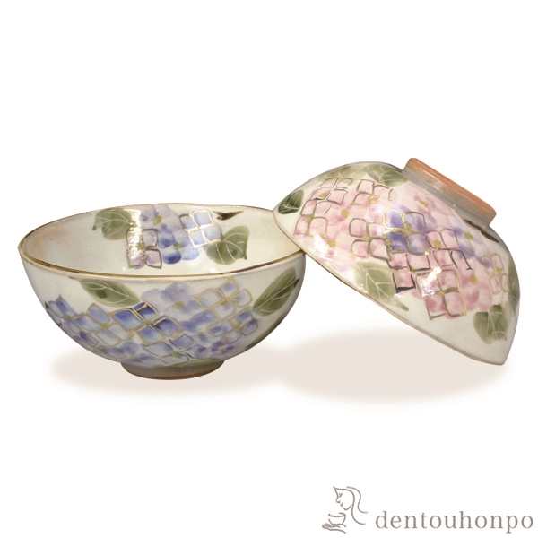 【清水焼(京焼)】組飯碗 京あじさい ペア