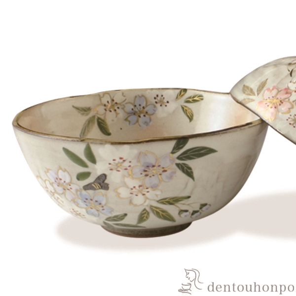 乾山調の味わい深い生地に、優しい色合いで描かれた桜の花。食卓を春らしく演出します。