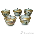 【清水焼(京焼)】蓋付お茶呑茶碗 絵変わり 源氏物語 5客セット