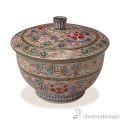 ヒワ色は、マヒワという鳥の羽色が黄緑色な事に由来しています。華麗な中にも落ち着きがある蓋付お茶呑茶碗です。