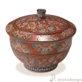 吉祥の色、赤を主体とした色使いがとても華やかな器。丹精込めた作り手の思いが伝わる、正に珠玉の一品といえるでしょう。