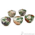 【清水焼(京焼)】蓋付お茶呑茶碗 絵変わり 富貴五草花 5客セット