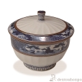 壹楽窯ならではの品格ある磁器に、伝統的な染付山水を描きました。白地を上手に生かしたデザインです。