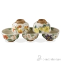 【清水焼(京焼)】お茶呑茶碗 白掛彩草花 5客セット