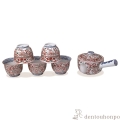 【清水焼(京焼)】急須茶器揃 彫赤絵花鳥 お茶呑茶碗5客・急須1個セット