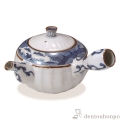 壹楽窯ならではの品格ある磁器に、伝統的な染付山水を描きました。白地を上手に生かしたデザインです。