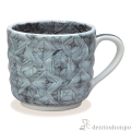 染付で器の内外に縁起の良い連続紋を描き詰めました。どっしりした形からは想像できない軽さのマグカップです。