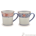 白磁に描かれた雲錦模様が美しいマグカップです。青色と赤色のペアで、贈り物としても喜ばれます。