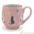 【清水焼(京焼)】マグカップ 交趾花ねこ ピンク