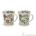 繁栄を象徴する唐草模様を可愛く描いたマグカップです。色違いの組合わせで贈り物にも喜ばれます。