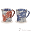 花模様を伸び伸びと元気よく描きました。色違いのペアマグは贈り物として喜ばれます。