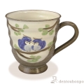 【清水焼(京焼)】マグカップ 粉引ふくろう 青