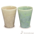 茶と緑色の優しい色目が心和むカップです。美しい結晶釉は贈答品としても喜ばれます。器の表面に花が咲いたような美しい器で、2つとして同じものができないのも特徴のひとつです。様々な結晶の形を楽んでいただける商品です。