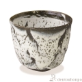 釉が縮れて様々な景色をみせる「かひらぎ」。焼酎や梅酒には味わい深いこの器で。少し楕円の形も趣です。