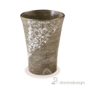 ダークな生地に細やかな印華によって浮かび上がった花が美しいフリーカップです。