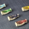 ろくろ成形した円筒形の素地に鯉のぼりを描きました。食卓に爽やかな風を運んでくれる箸置です。