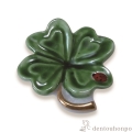 幸運を呼ぶと言われる、四つ葉のクローバー。緑の葉っぱの上に乗った赤いてんとう虫がアクセントになっています。