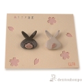 後ろ姿の兎に桜をあしらった春らしい箸置。繊細な作りも見どころです。