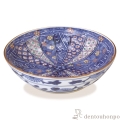 内側に書詰められた染付と色絵の古紋柄。その中に散らされた赤と黄色の花文様が可愛いアクセントになっています。