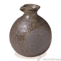 灰釉に丸い焼〆がアクセントのだし入です。酒瓶としてもお使い頂けます。