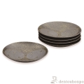 シャープな器体に味わい深い灰緑釉を掛けました。丸く残したデザインが印象的な、季節を問わず重宝する皿揃です。
