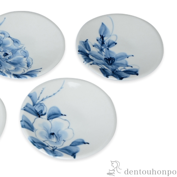 【清水焼(京焼)】三寸皿揃 染付草花 5個セット