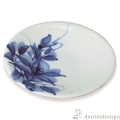 濃い目の染付で描かれた鉄線の花と、余白の白との対比が綺麗なお皿です。