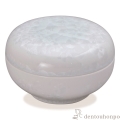 上品な形状の器体に施釉された白色の結晶釉。透明感のある美しい蓋物です。器の表面に花が咲いたような美しい器で、2つとして同じものができないのも特徴のひとつです。様々な結晶の形を楽んでいただける商品です。