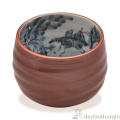 内側には染付で山水を描き詰め、外側はシンプルに朱を巻きました。ふくよかな形のぐい呑です。