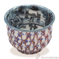 福を掬い取ると言われる、縁起の良い網目模様のぐい呑です。内側の染付に対し、赤絵がよく映えています。