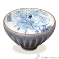 紫紺の交趾釉と染付の牡丹がよく調和したぐい呑です。