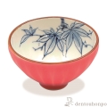 外側の鮮やかな交趾の赤色が、これから美しく色づく紅葉の色彩を連想させてくれます。水面に揺れる紅葉を楽しめる盃です。