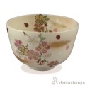 伝統的な仁清素地に、爛漫の桜を描きました。華やかで心躍る抹茶 です。