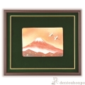 赤富士に、力強く羽ばたく二羽の鶴をあしらいました。お祝いなどの贈り物に最適な、吉祥尽くしの陶額です。