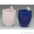 シンプルな色、形状の器体と、愛くるしい子ねこの対比がユニークな湯呑。大小同じサイズのペアです。