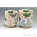 無病息災につながる六瓢を「いっちん」技法で表しました。優し気な色使いが陶肌と相まって趣のある湯呑となっています。